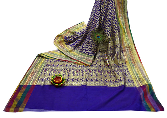 Indian Vintage Heavy Purple & Blue Saree 100% Pure Silk Hand Woven Kanjeevaram Sari 5yd Ethnic Zari Premium Wedding Saree with blouse