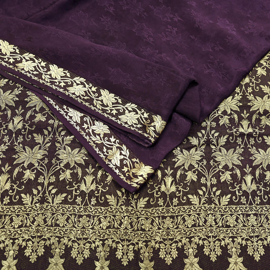 Indian Vintage Purple Banarasi Brocade Saree | Heavy Wedding Sari in Pure Satin Silk | Woven Zari Fabric for Crafting, Dressmaking