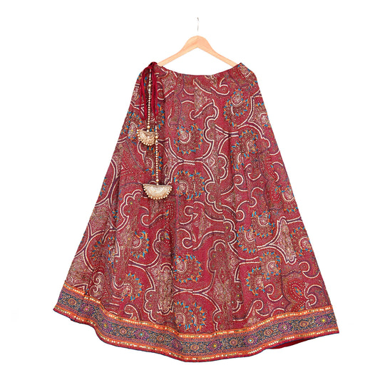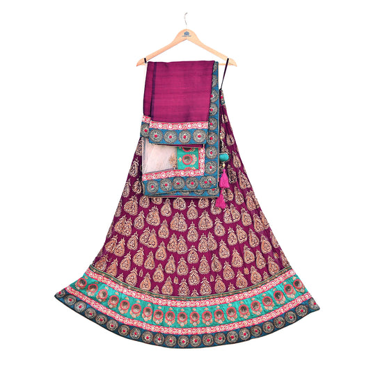Indian New Heavy Purple & Maroon Colored Mesh/Net Hand Embroidered Lehenga Skirt By Designer Sabyasachi Bridal Wear