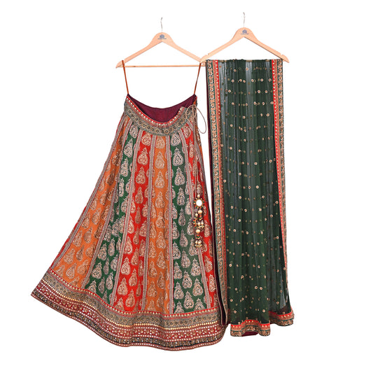 Indian New Heavy Multi & Green Pure Georgette Silk/Net Hand Embroidered Lehenga 2pcs Set By Designer Sabyasachi Bridal Wear