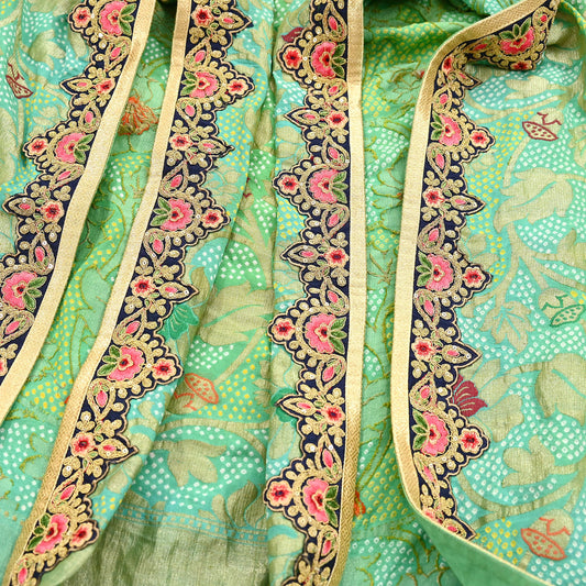 Indian Vintage Heavy Green Pure georgette silk Hand Embroidered Bandhani Dupatta Designer By Anamika Khanna Bridal Wear Veil Hijab