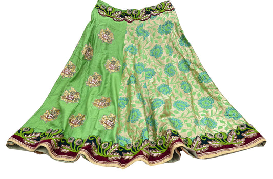 Indian Pre-owned Green Pure Tissue Silk Hand Embroidered Lehenga/Skirt Designer By Anamika Khanna Bridal Wear Zardozi/ Dabka Bollywood skirt
