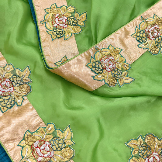 Indian Pre-owned Sari Green Pure Chanderi Silk Hand Embroidered Anamika Khanna Designer Sarees Ethnic 6Yd Sewing Zardozi Wedding Sarees
