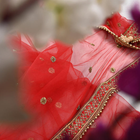 Indian Heavy Wedding Dupatta Red Net Long Stole Hand Embroidered By Designer Sabyasachi Scarves Zardozi Bridal Veil