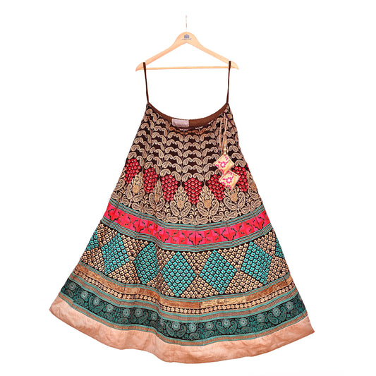 Indian Designer Skirt Abu Jani Embroidered Chanderi Cotton Preowned Wedding Couture Outfit Christmas Gift