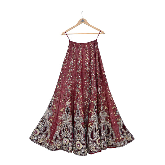 Designer Manish malhotra Maroon Raw Silk Skirt Heavy Embroidered Bridal Lehenga Bottom party wear Couture Outfit