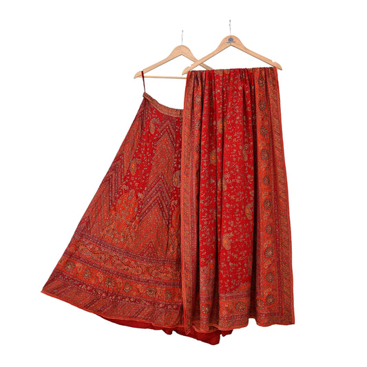Indian Pre-owned Orange & Red Pure Silk Hand Embroidered Ritu Kumar Designer Lehenga 3pcs Set Ethnic Bollywood Party Wear