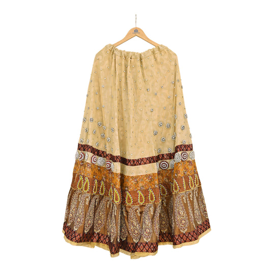 Party wear Heavy Beige Pure Satin Silk Hand Embroidered Lehenga Skirt by Designer Tarun Tahiliani Bridal Wear Indian Couture Fashion