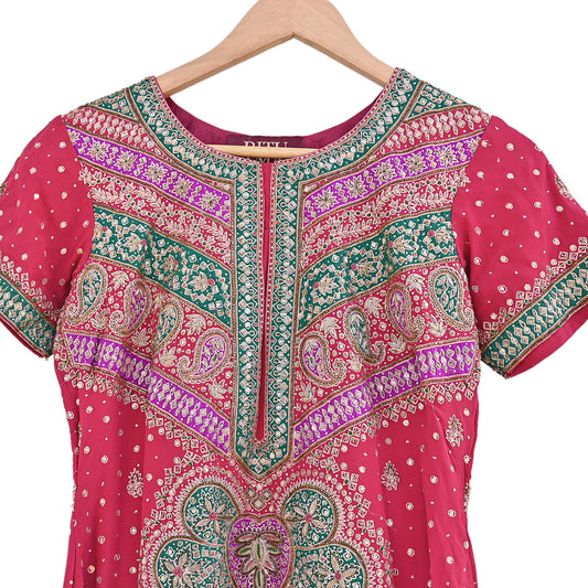 Indian Vintage Ritu Kumar Pink Pure Crepe Silk Long Kurta Hand Embroidered Printed Designer Ethnic Festive Party Wear Tunic