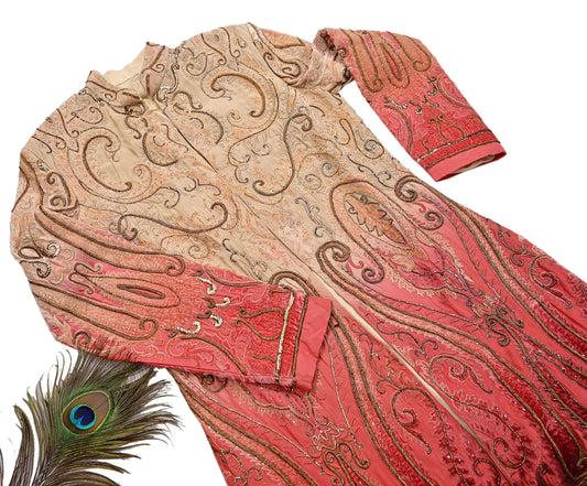 Vintage Beige & Peach Raw Silk Hand Embroidered Designer By Tarun Tahiliani Sherwani Indian Groom Wedding Bandhgala Coat
