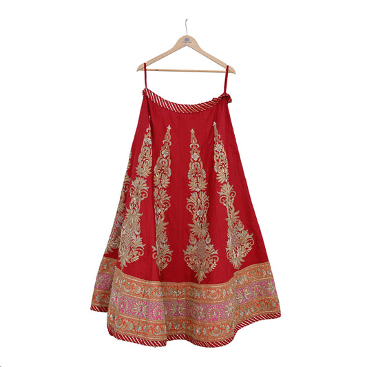 Indian Vintage Red Raw Silk Bridal Skirt, Gota patti Work Lehenga, Hand Embroidered Wedding Wear, Designer Abu Jani Festive Outfit