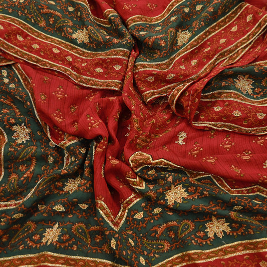 Indian Vintage Red & Green Dupatta Pure Silk Long Stole Hand Embroidered Designer By Ritu Kumar Scarves Scarf Zari Zardozi