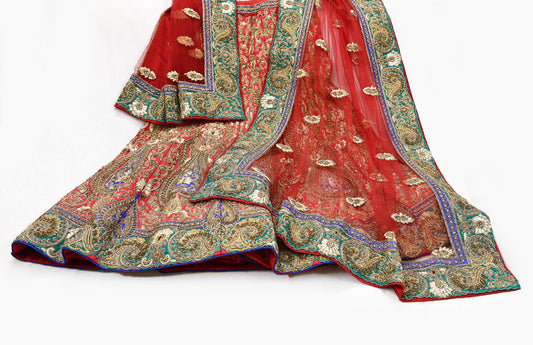 Indian Heavy Red Colored Raw Silk/Net Hand Embroidered Lehenga 2pcs Set By Designer Sabyasachi Bridal Wear