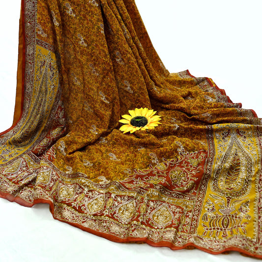 Indian Heavy Sari Mustard Pure Georgette Silk Hand Embroidered Sarees Designer Manish Malhotra 6Yd Sewing Ethnic Bollywood party wear saree