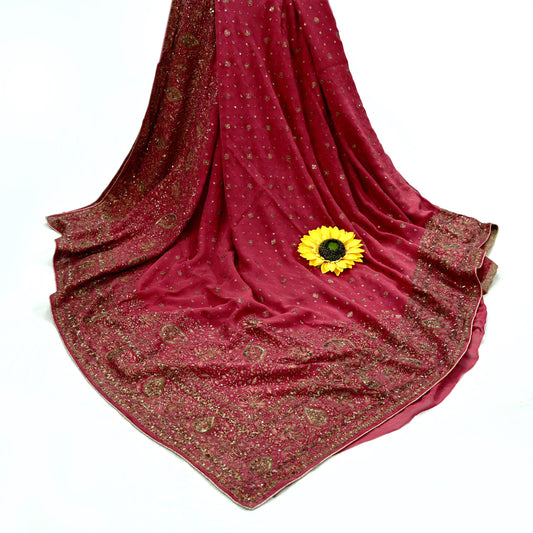 Indian Heavy Sari Maroon Pure Georgette Silk Hand Embroidered Sarees Designer Sabyasachi 6Yd Sewing Ethnic Bollywood party wear saree Dabka