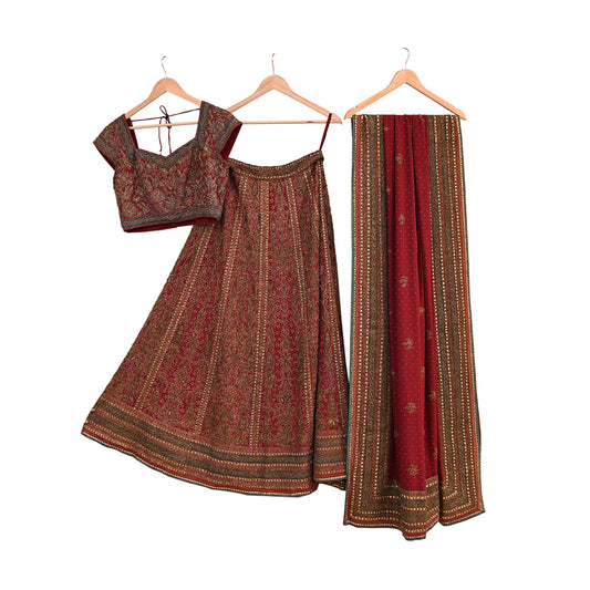Indian Maroon Pure Silk Ritu Kumar Lehenga 3pcs Set Hand Embroidered Bridal Outfit Designer Bollywood Party Wear Ethnic Dress