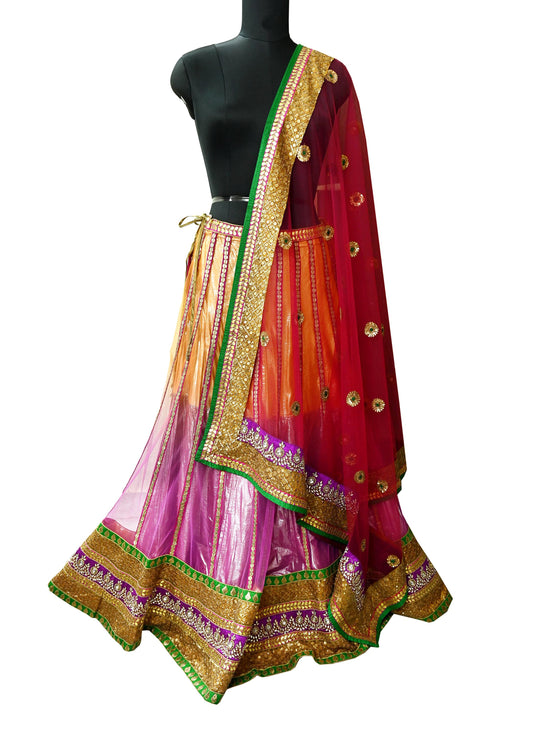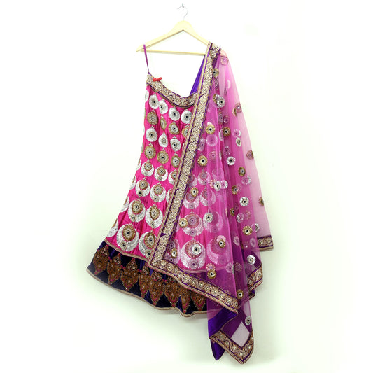 Indian New Heavy Purple & Maroon Colored Mesh/Net Hand Embroidered Lehenga 2pcs Set By Designer Sabyasachi Bridal Wear
