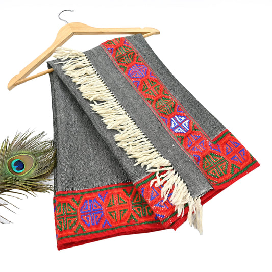 Vintage Black & Ivory Pure Woolen Naga Handwoven Shawl work Long Throw Stole Warm Stole Warm Fringes