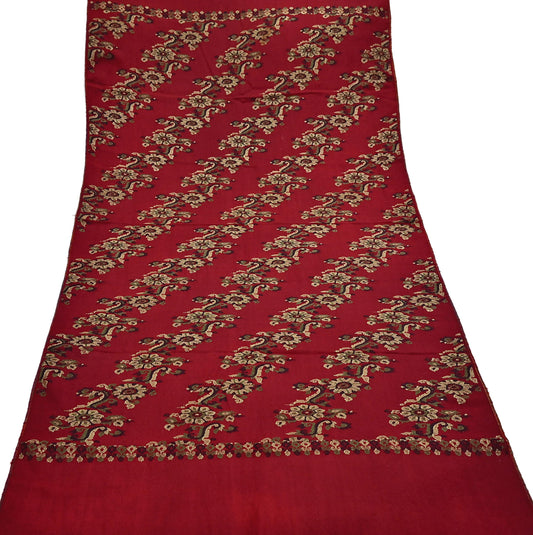 Indian Vintage Dark Red Pure Woolen Shawl Handmade Woven Jamawar Work Long Throw Stole Warm Floral Design Soft