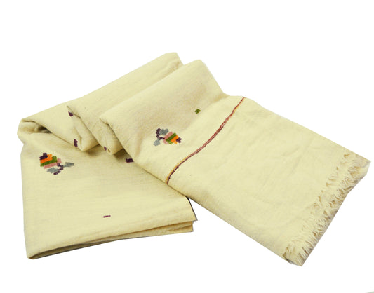Vintage shawl Ivory Pure Woolen Shawl Handmade Woven Long Throw Stole Warm Stole Soft Fringes