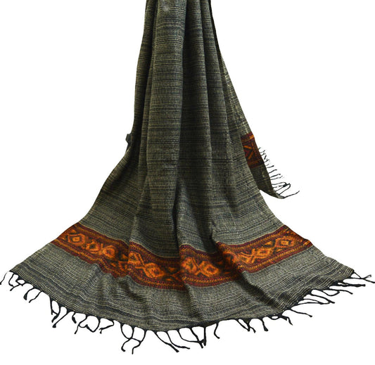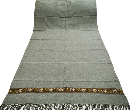 Vintage Gray Pure Woolen Handmade Kullu Shawl Woven work Long Throw Stole Warm Stole Warm Fringes