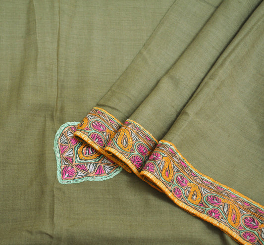 Vintage Shawl Brown Pure Woolen Handmade Suzani Long Throw Stole Warm Stole Floral Design Fringes