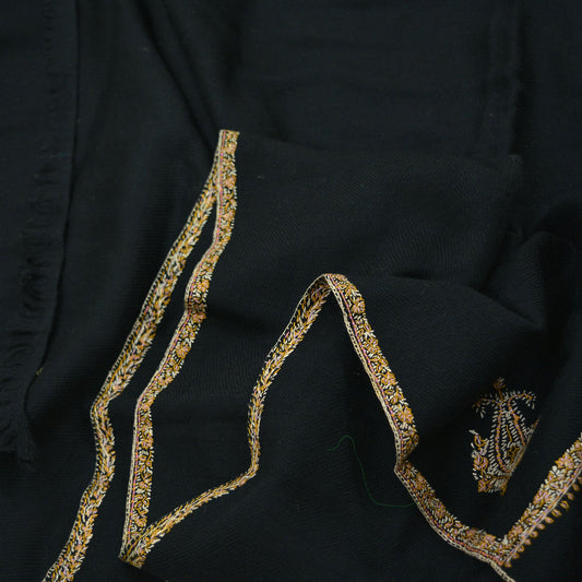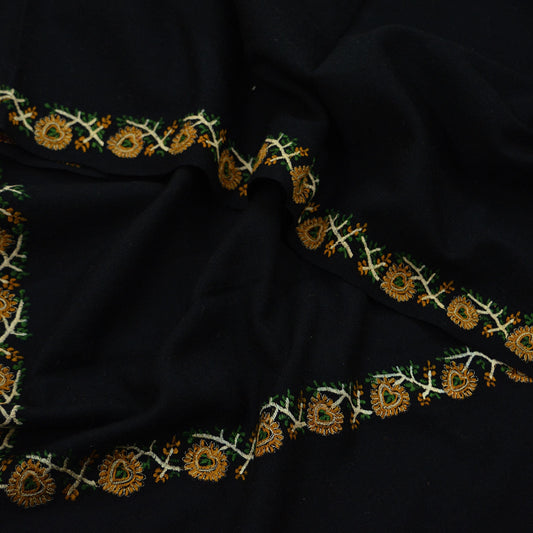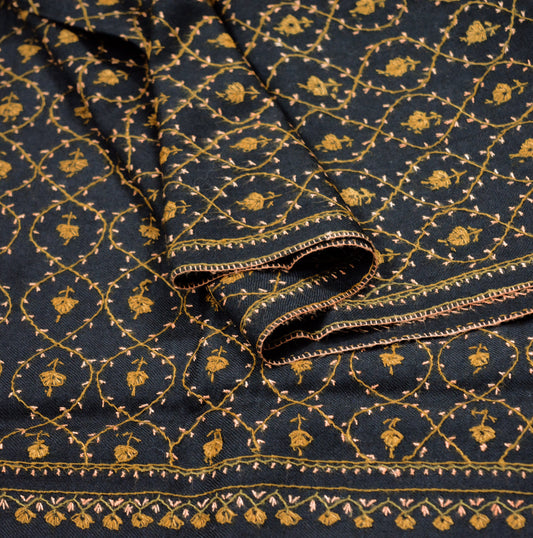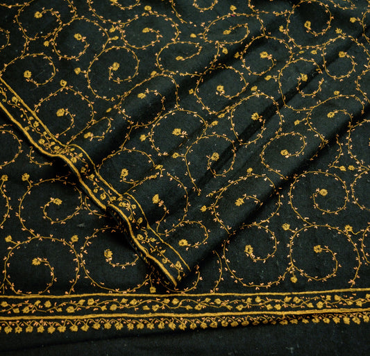 Vintage Black Pure Woolen Shawl Handmade Suzani Long Throw Stole Warm Stole Floral Design