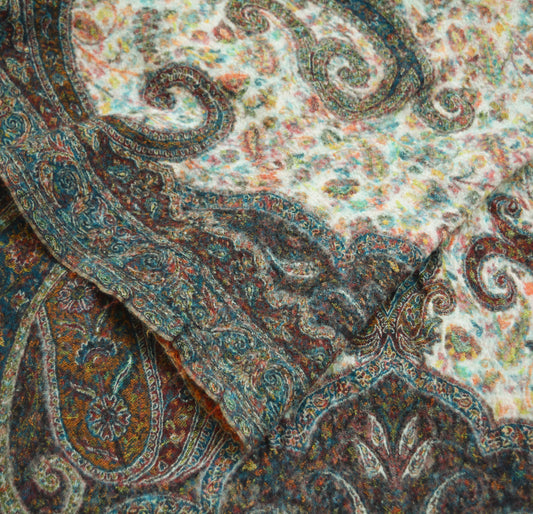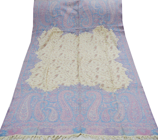 Vintage Cream Shawl Pure Woolen Handmade Suzani Long Throw Stole Warm Stole Paisley Design Soft