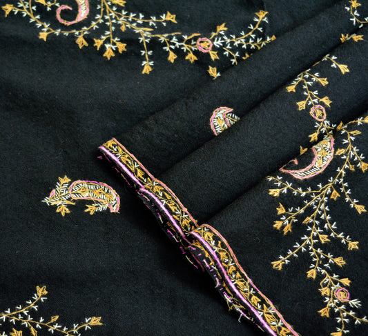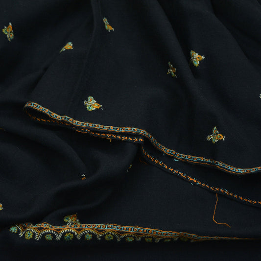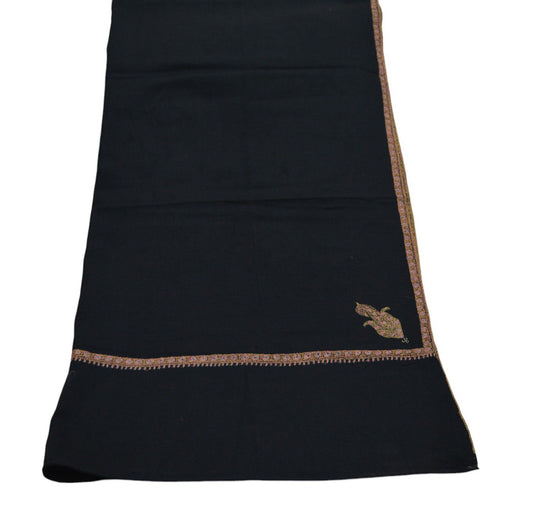 Vintage Black Pure Woolen Shawl Handmade Suzani Long Throw Stole Warm Stole Floral Design