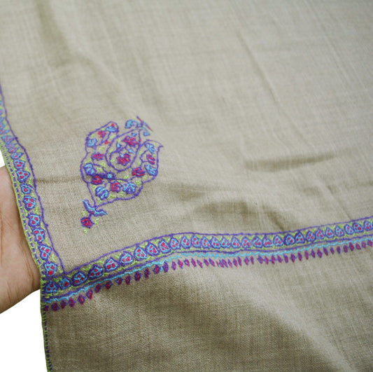 Vintage Gray Pure Woolen Shawl Handmade Suzani Long Throw Stole Warm Stole Floral Design