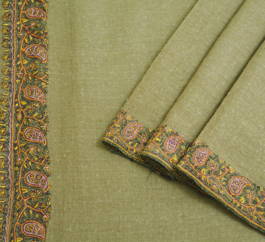 Vintage Brown Pure Woolen Shawl Handmade Suzani Long Throw Stole Warm Stole Floral Design