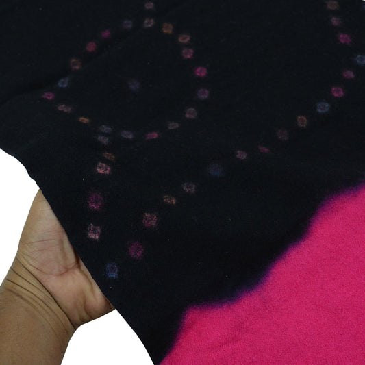 Indian Vintage Pink & Black Long Bandhani Print Woolen Shawl Stole Floral Veil Woman Hijab Shawl Warm Soft cozy for her for women's