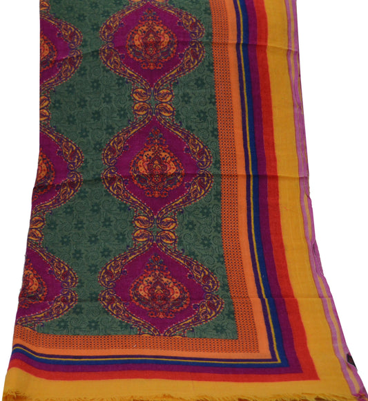 Vintage Green Long Stole Pure Woolen Scarf Printed Dupatta Infinity Scarves Sarong Wrap Veil Woman Hijab Shawl Craft Fabric