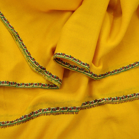 Indian Vintage Yellow Pure Woolen Shawl Handmade Suzani Long Throw Stole Warm Floral Design For Winter For Women's Soft Cozy Scarf Scarves
