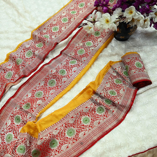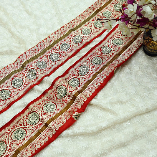 Indian Vintage Red Sari Border Woven Banarasi 1yd Trim Craft Sewing Recycled Sari Border Zari Pure Silk Home Decor Crafting