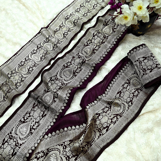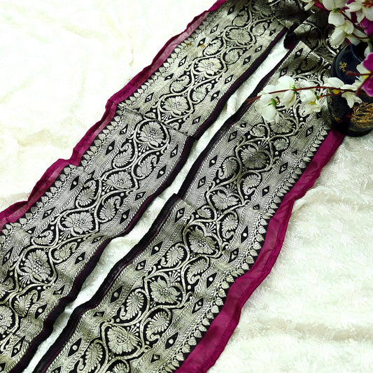 Indian Vintage Purple Sari Border Woven Banarasi 1yd Trim Craft Sewing Recycled Sari Border Silver Zari Pure Silk Home Decor Crafting