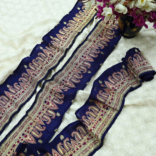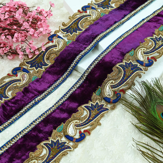 Indian Vintage Sari Border Purple Hand Embroidered Craft Trim Lace 1Yd Sewing Sari Ribbon Dress making Dress Designing Decor Dabka Peacock