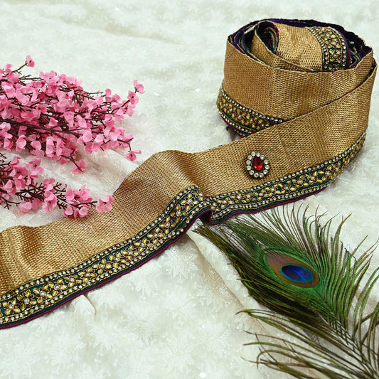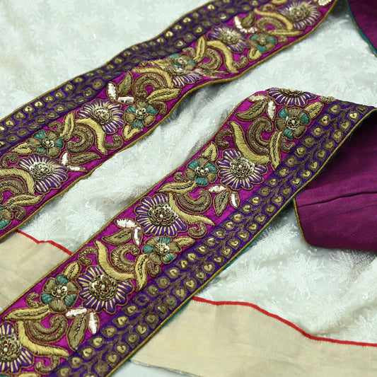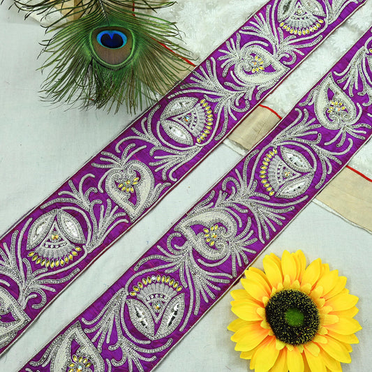Indian Vintage Sari Border Purple Hand Embroidered Craft Trim Lace 1Yd Sewing Sari Ribbon Dress making Dress Designing Decor Dabka Mukesh