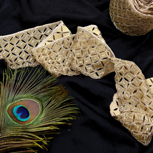 Indian Vintage Sari Border Golden Hand Embroidered Craft Trim Lace 1Yd Sewing Sari Ribbon Dress making Dress Designing Decor Dabka