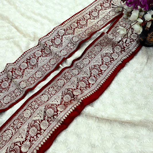 Indian Vintage Maroon Sari Border Woven Banarasi 1yd Trim Craft Sewing Recycled Sari Border Zari Pure Silk Home Decor Crafting