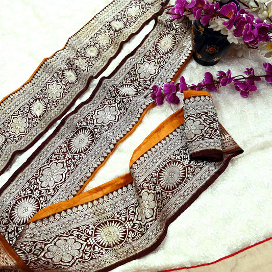 Indian Vintage Brown Sari Border Woven Banarasi Trim Craft 1yd Sewing Recycled Trim Zari Pure Silk Home Decor Crafting