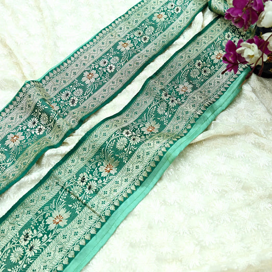 Indian Vintage Green Sari Border Woven Banarasi 1yd Trim Craft Sewing Recycled Sari Border Silver Zari Pure Silk Decor Crafting