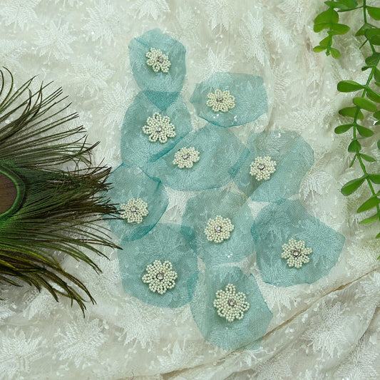 Indian Vintage Green Net Hand-Embroidered Appliques Set of 1 I Zardozi, Dabka, Bead Work | Floral Patches for Crafts, Journals
