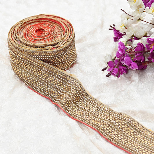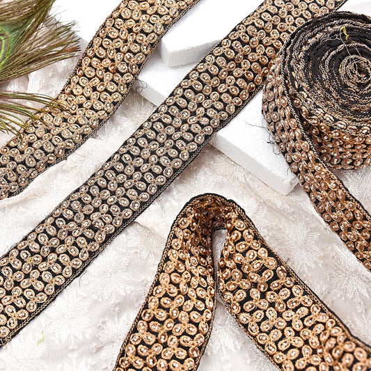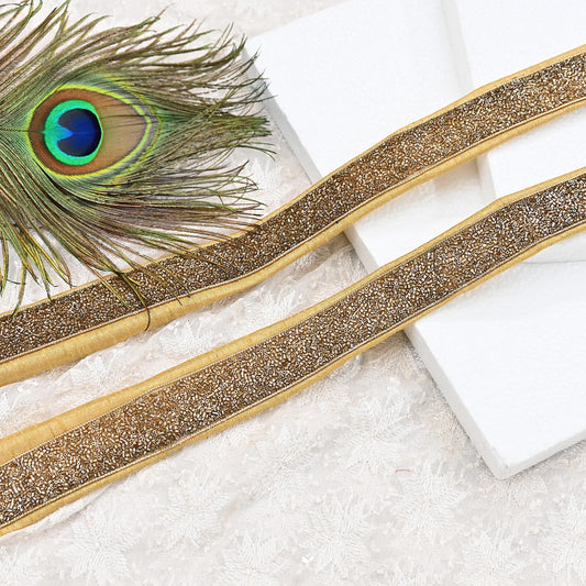 Indian Vintage Golden Sari Border 1Yd Hand Embroidered Dabka Lace Trim Sewing Craft Ribbon Dress Decor