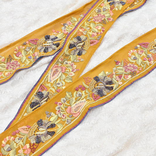 Indian Vintage Golden Sari Border Hand Embroidered Craft Trim Lace Sewing Pure Georgette Silk Ribbon Recycled Sari Border Dress making