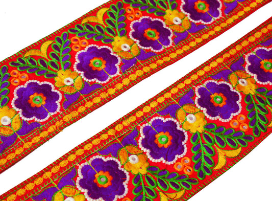 Indian Vintage Red Sari Border Embroidered Indian Craft Trim Lace Sewing Sari Ribbon Recycled Sari Border Floral Home Decor Gift Wrapping