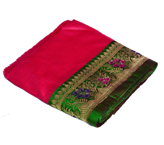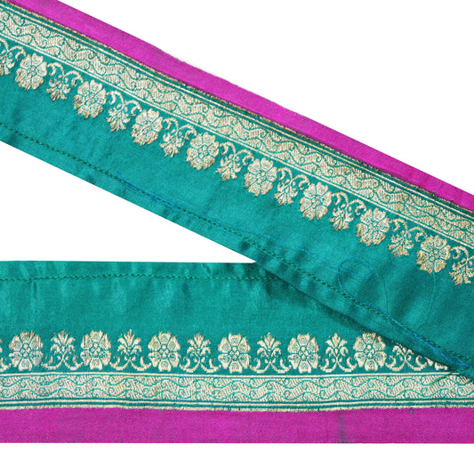 Indian Vintage Green & Pink Sari Border Antique Woven Brocade Trim Craft Sewing Ribbon Recycled Sari Border Pure Silk Home Decor Lace