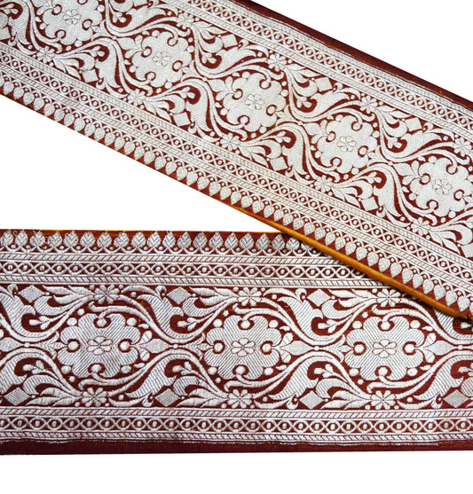 Indian Vintage Maroon Sari Border Woven Banarasi Brocade Trim Craft Sewing Recycled Sari Border Golden Zari Pure Silk Home Decor Crafting