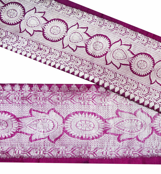 Indian Vintage Pink Sari Border Woven Banarasi Brocade Trim Craft Sewing Recycled Sari Border Silver Zari Pure Silk Home Decor Crafting