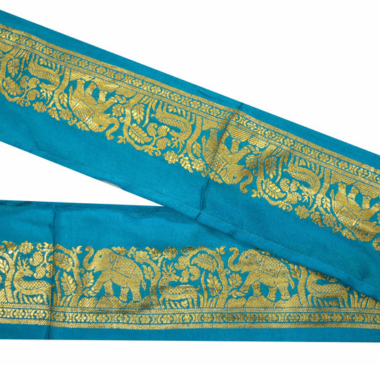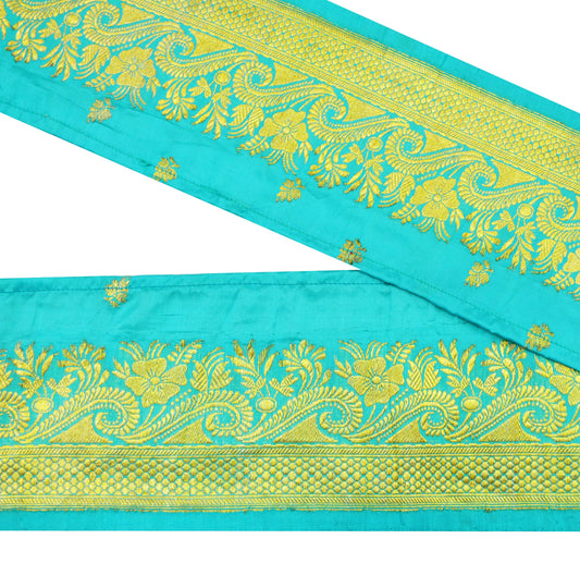 Indian Vintage Green Sari Border Woven Banarasi Brocade Trim Craft Sewing Recycled Sari Border Golden Zari Pure Satin Silk Decor Crafting